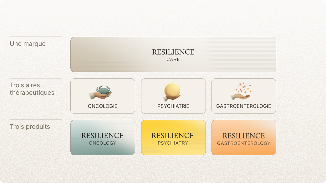En octobre dernier, nous avons annoncé une première évolution de notre identité de marque portée par notre croissance et notre vision multi-pathologies. Resilience est ainsi devenue Resilience Care, une marque unique rassemblant, dès lors, nos trois solutions : Resilience Oncology, Resilience Gastroenterology (ex Guty) et Resilience Psychiatry (ex Edra). Cette harmonisation des noms au sein de nos solutions était une étape essentielle pour faciliter leur cohabitation et leur synergie et apporter plus de simplicité, de clarté et de cohérence à nos partenaires et nos utilisateurs. Elle constitue une évolution naturelle, parfaitement alignée avec notre développement, et souligne notre capacité à offrir une véritable approche de soins multi-pathologies qui soutient autant les soins en routine que la recherche clinique.